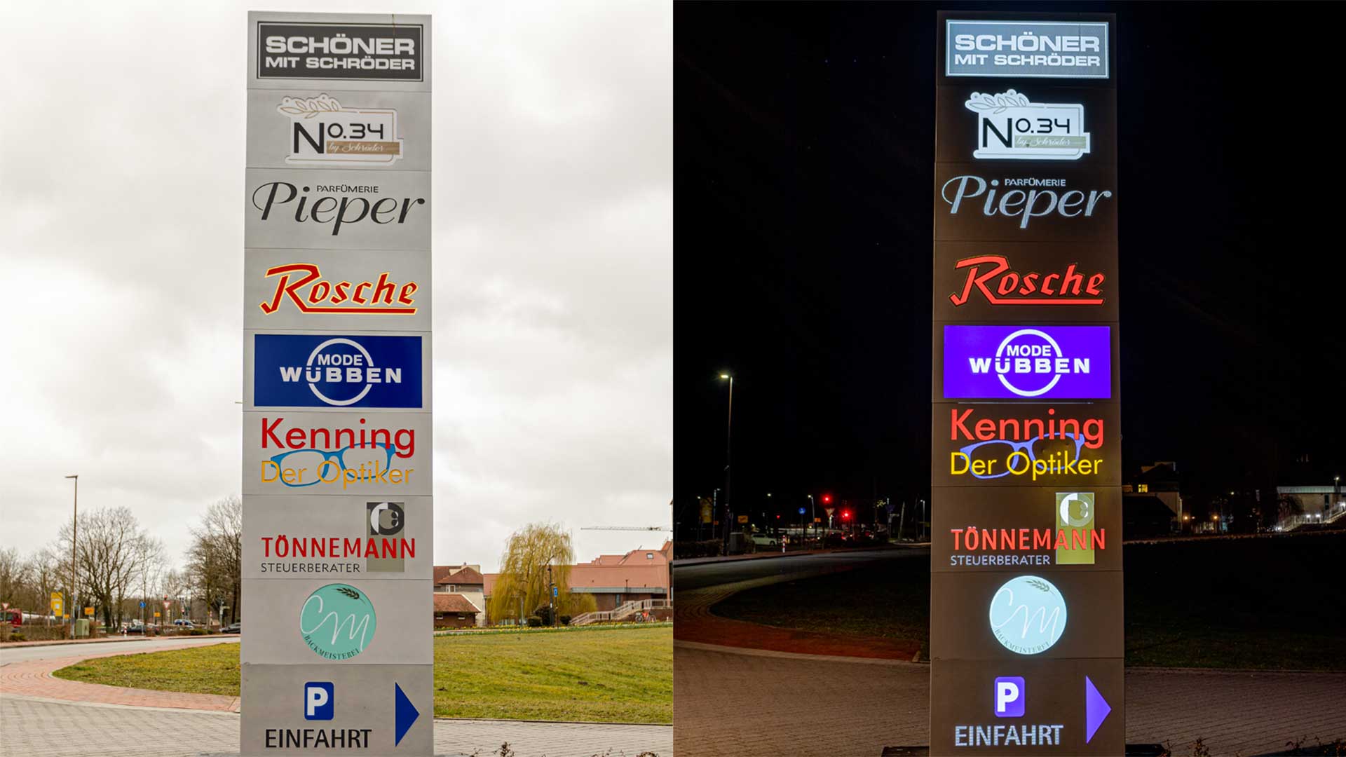 Es gibt immer Potenzial für einen Eye-Catcher. Das Logo, den Weg zur Einfahrt oder einzigartige Produkte. Unser Leben lebt von den Eindrücken, die uns durch Werbeanlagen vermittelt werden. Mit Beleuchtung oder ausgefallenen Effekten in klein oder riesig groß, aber immer gut sichtbar und sehr langlebig. Wir entwickeln auch für Sie die passende Werbeanlage und das ist eine gute Anlage.